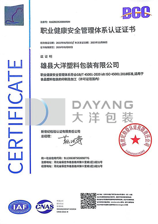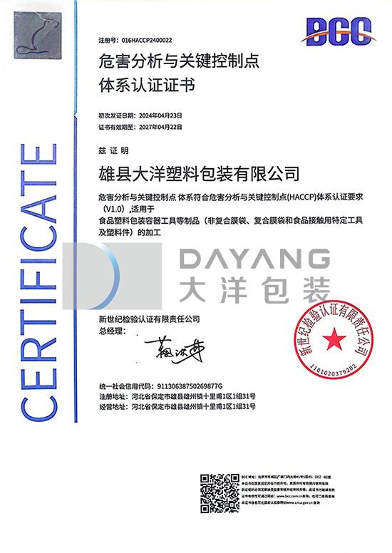 公司已通(tōng)過公司已通(tōng)過質量管理(lǐ)體(tǐ)系,食品安全管理(lǐ•&ε≈)體(tǐ)系,職業(yè)健康安全管理(lǐ)體(tǐ)系,環境管理(lǐ)體εε ☆(tǐ)系、HACCP體(tǐ)系五個(g≈↑₽è)體(tǐ)系的(de)認證。